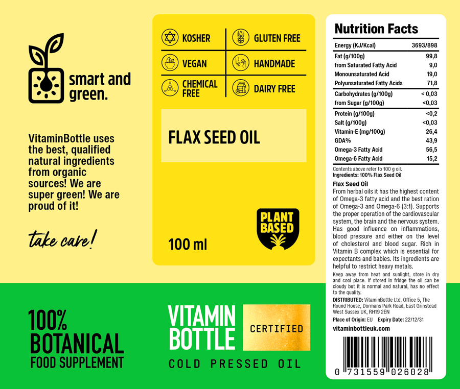 زيت بذور الكتان زيت الطعام المعصور على البارد 100 مل