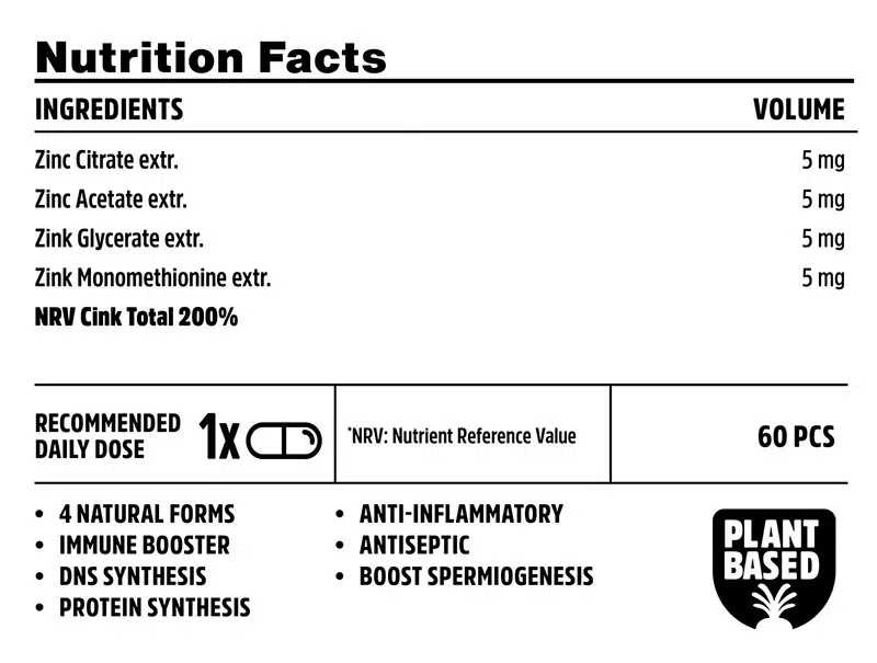 We use four different forms of zinc in our product to maximize absorption and utilization of zinc. It is a strong antioxidant. It plays key role in several hormonal and enzymatic processes and helps to keep the integrity of the cell membranes. It stabilizes the structure if insulin, hereby support the normal level of the blood sugar. It contributes the normal operation of the heart, immune- and cardiovascular systems. Its anti-inflammatory and antibacterial effects are well-known too.